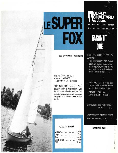 O Super-Fox foi essencialmente construído para ser um barco escola/família, sem qualquer fim competitivo. Poderá levar até 5 tripulantes. De aparelho muito simples e com grande estabilidade, foi um dos primeiros barcos usado na escola de vela para adultos...aqui vos deixamos algumas imagens da altura em que foi apresentado ao público em 1969.